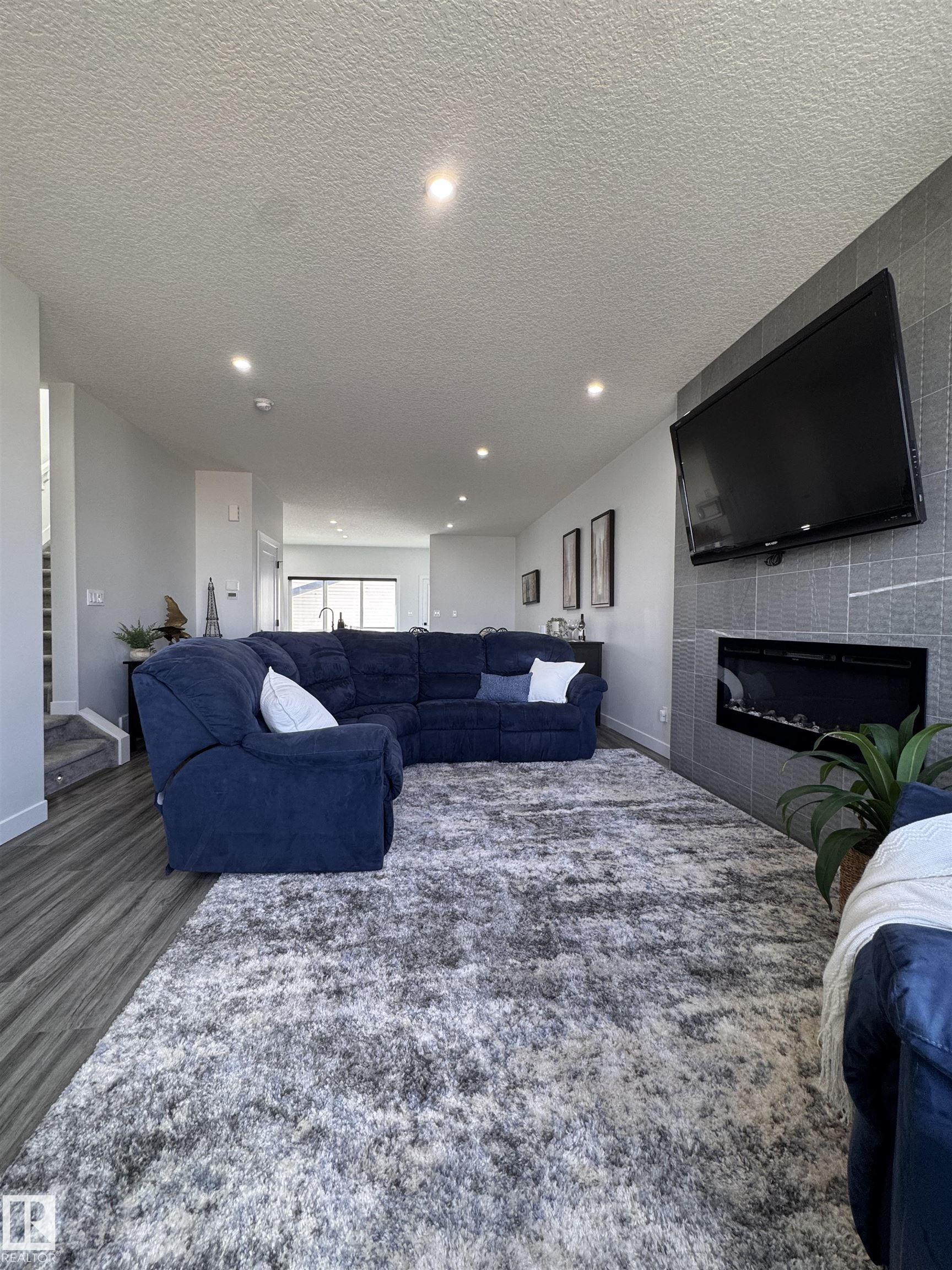 Better than new! This stunning 1,698 sq ft two-storey offers high ceilings and large bright windows that flood the home with natural light. The open-concept main floor features a spacious living area with a cozy fireplace and an entertainer’s kitchen complete with ceiling-height cabinetry, quartz countertops, a large island, and stainless steel appliances. A convenient 2-piece bath completes the main level. Upstairs, enjoy a versatile flex room, a spacious primary suite with a walk-in closet and a 4-piece e...