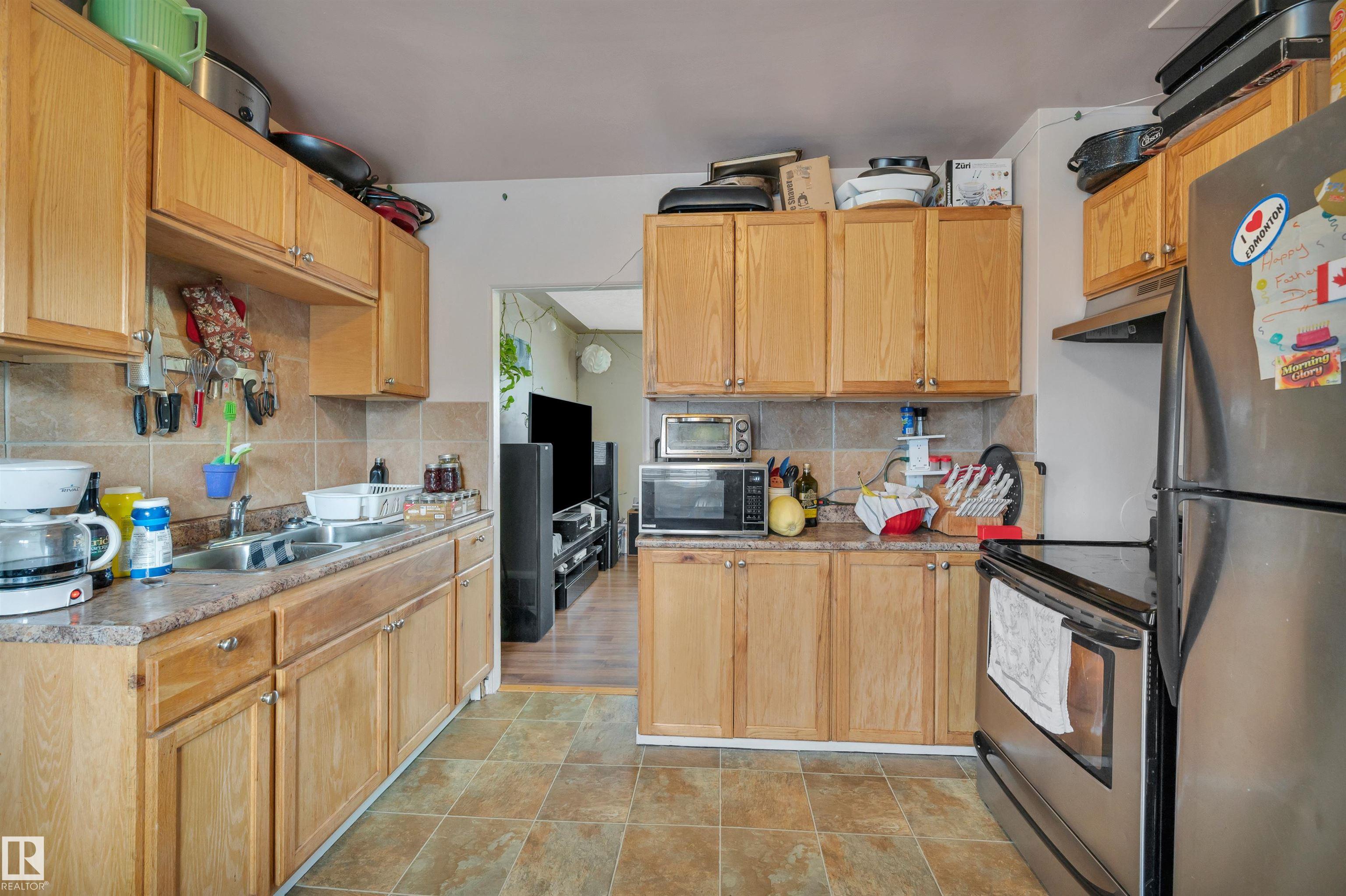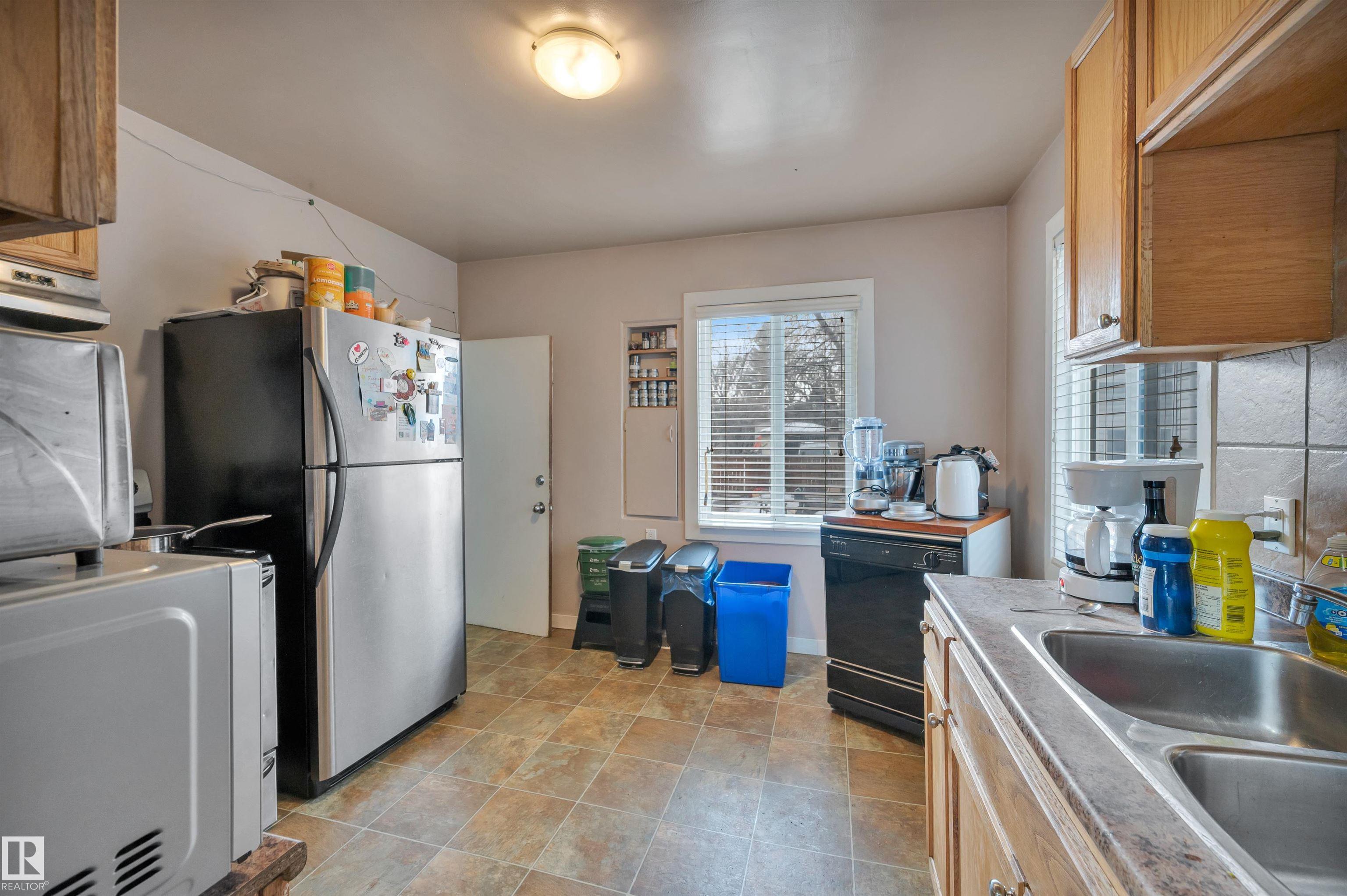 Solid home with super income/investment potential in much desired neighbourhood of Allendale. 3 bedrooms on main and cosy, bright 2 bedroom LEGAL basement suite, plus double car garage makes this home prime for steady income. Sitting tenants upstairs would like to stay. Features Hardwood Floors throughout main floor. Separate Large common laundry room. Fully fenced yard, and lots of extra parking at the back. 6 appliances included. Amazing location right off 109 St, with a quick bus or bike to the Hospital...
