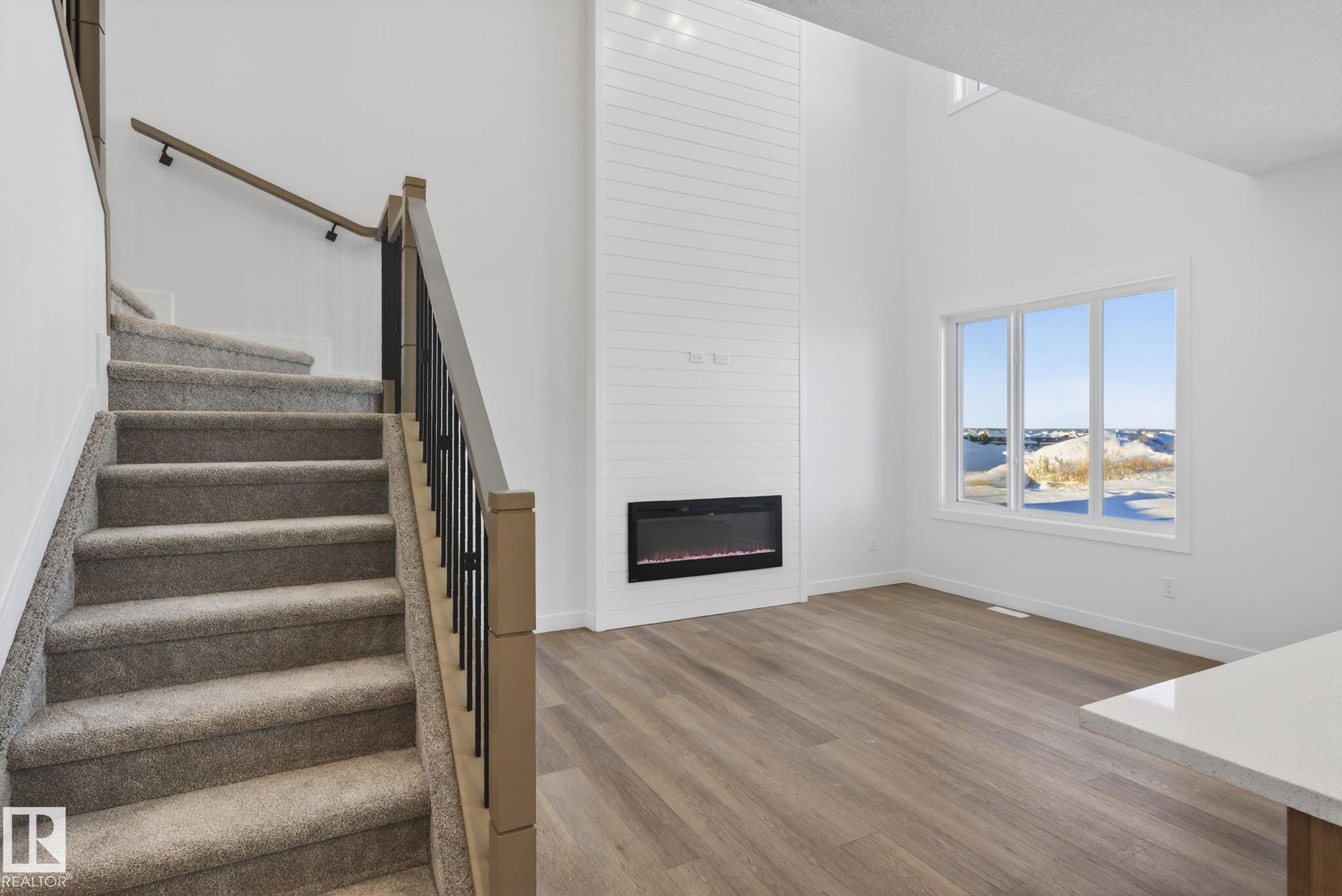 Welcome to this stunning half duplex in the sought-after community of Fenwyck, Spruce Grove – masterfully crafted by Victory Homes. Double attached garage with oversized driveway. Main floor den with full bathroom. The open-concept layout is highlighted by the open-to-above living room, complete with an electric fireplace with feature wall and large windows that flood the space with natural light. Kitchen with central island, ceiling-height cabinets and quartz countertops. Upstairs, enjoy the added comfort ...