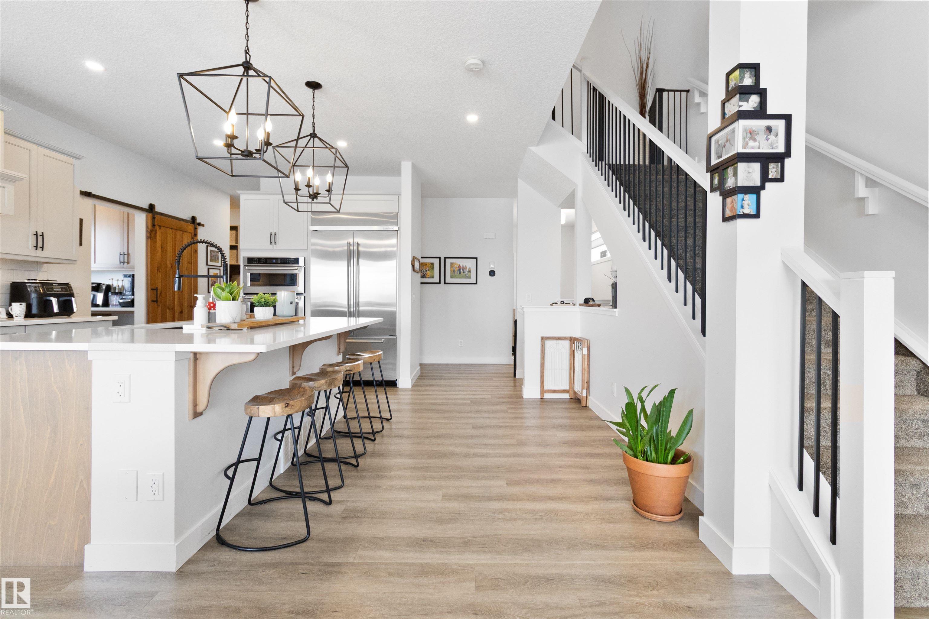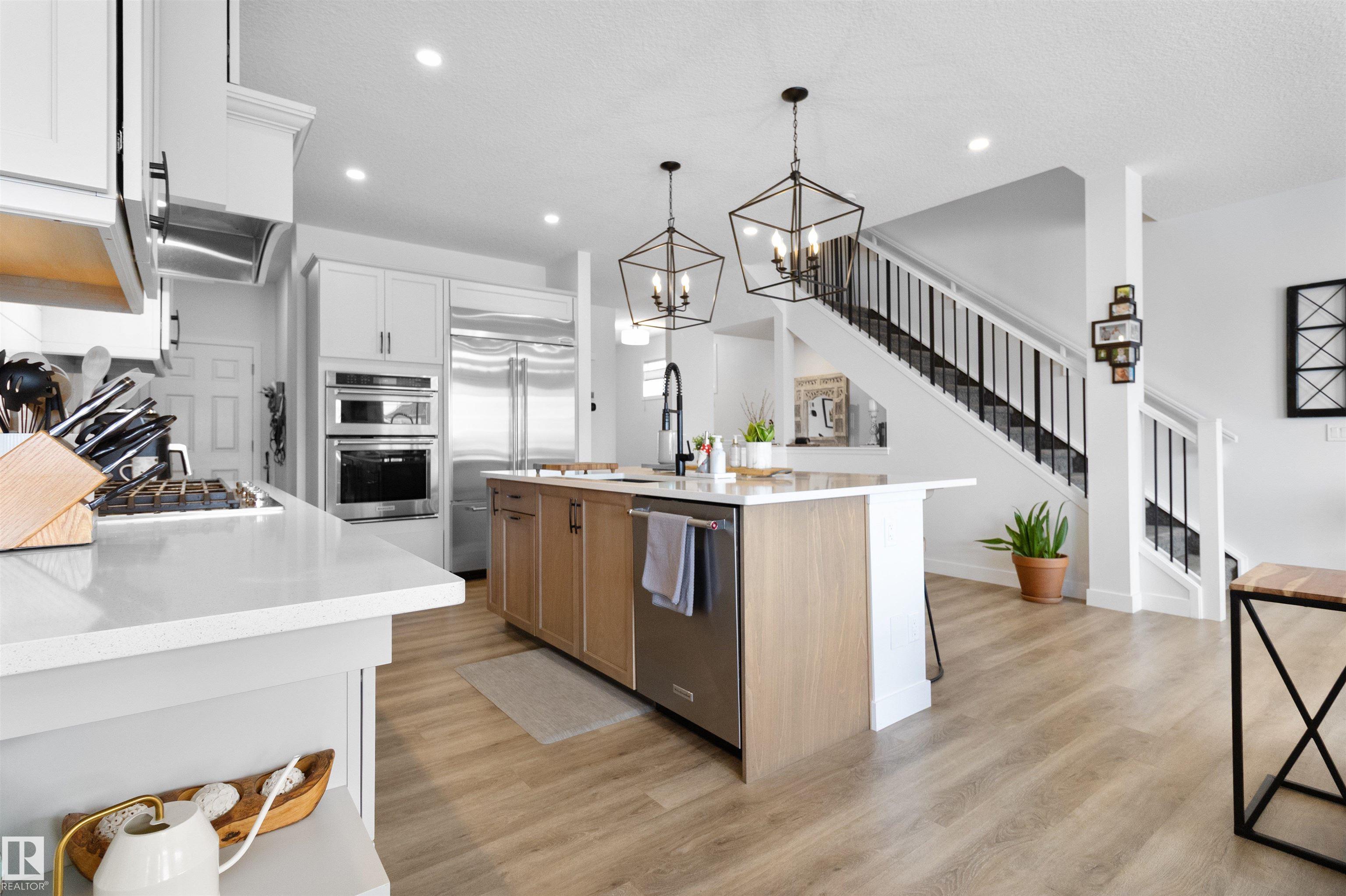 PRIME LOCATION! Backing the pond in a beautifully treed setting! This GORGEOUS and large family home offers an open concept design with an abundance of natural light and many attractive features throughout. 2 storey style with 2662 square feet plus a fully finished WALKOUT BASEMENT. Stunning chef’s GOURMET KITCHEN with high end appliances, pantry, huge island and Quartz countertops. Large dining area, vinyl plank flooring, spacious living room and fireplace. Big Bonus Room, laundry room and 4 BEDROOMS UP...
