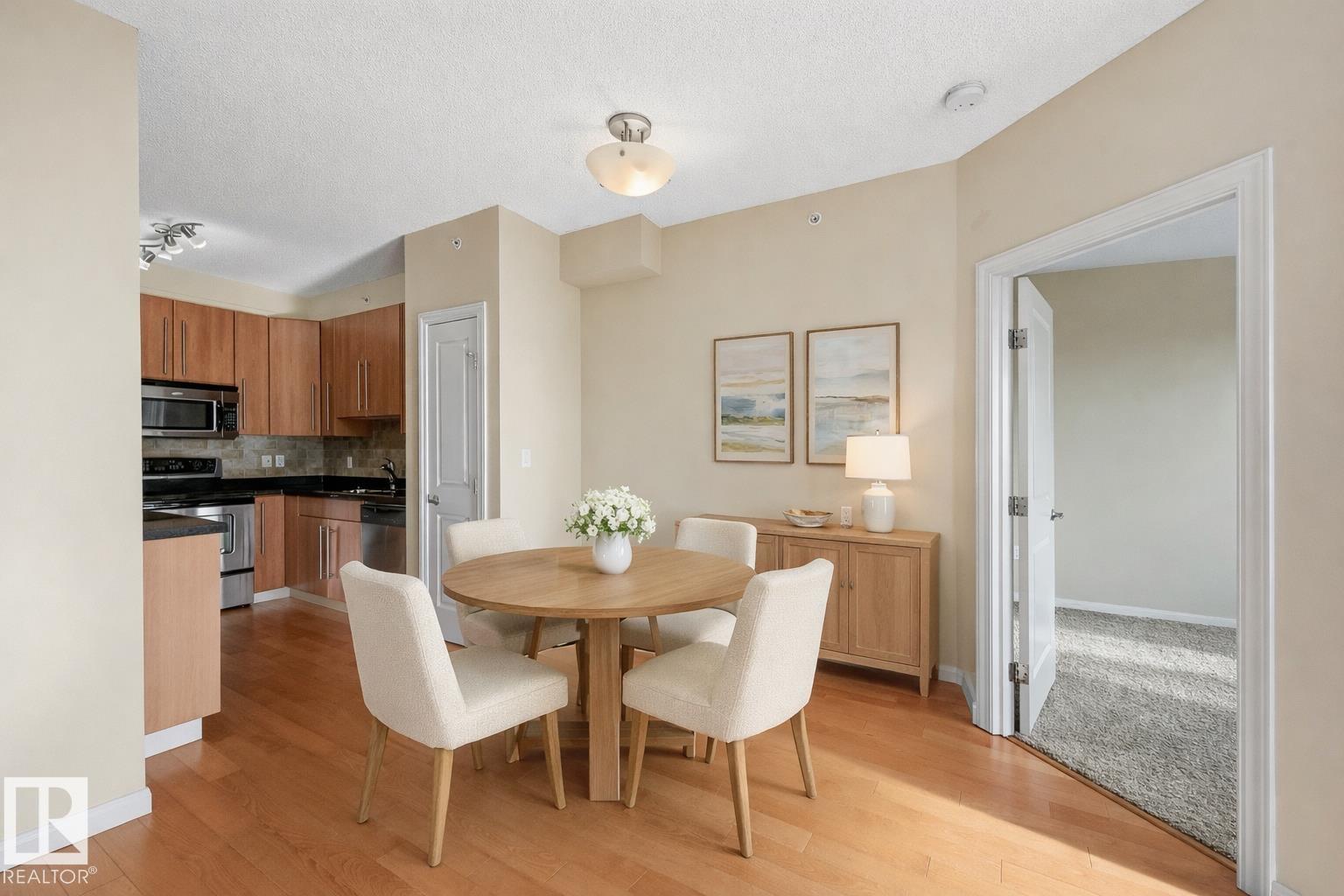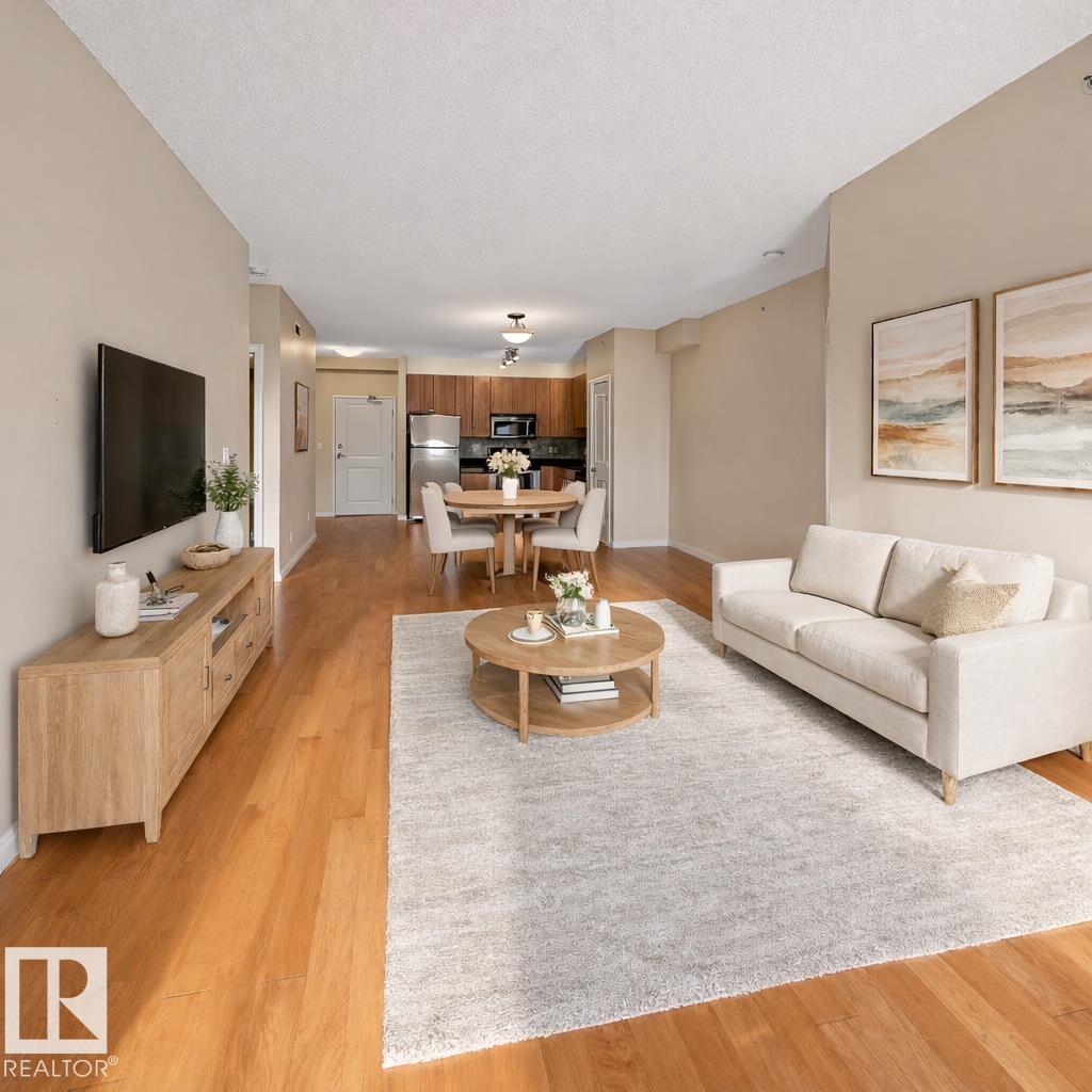 This South Facing unit comes with 2 TITLED UNDERGROUND HEATED PARKING STALLS — CONDO FEES INCLUDE ALL UTILITIES. Plus IN SUITE LAUNDRY Inside, you’ll find 2 spacious bedrooms, 2 full bathrooms, a spacious kitchen with maple cabinets, granite counter tops and SS appliances, in suite storage, and a balcony showcasing views of Edmonton’s river valley and the REMAX Field fireworks on Friday nights and holidays., all complemented by soaring 9-ft ceilings. The bright, functional floor plan is enhanced by large...