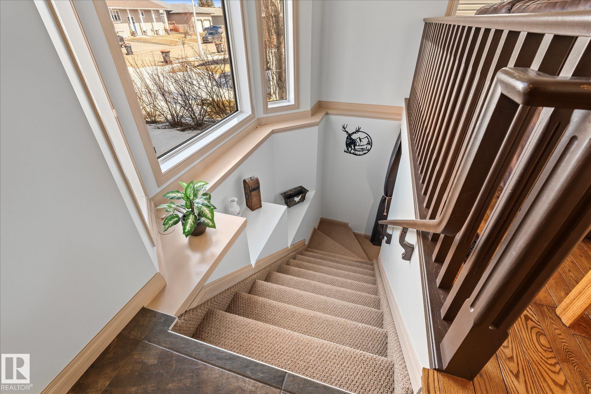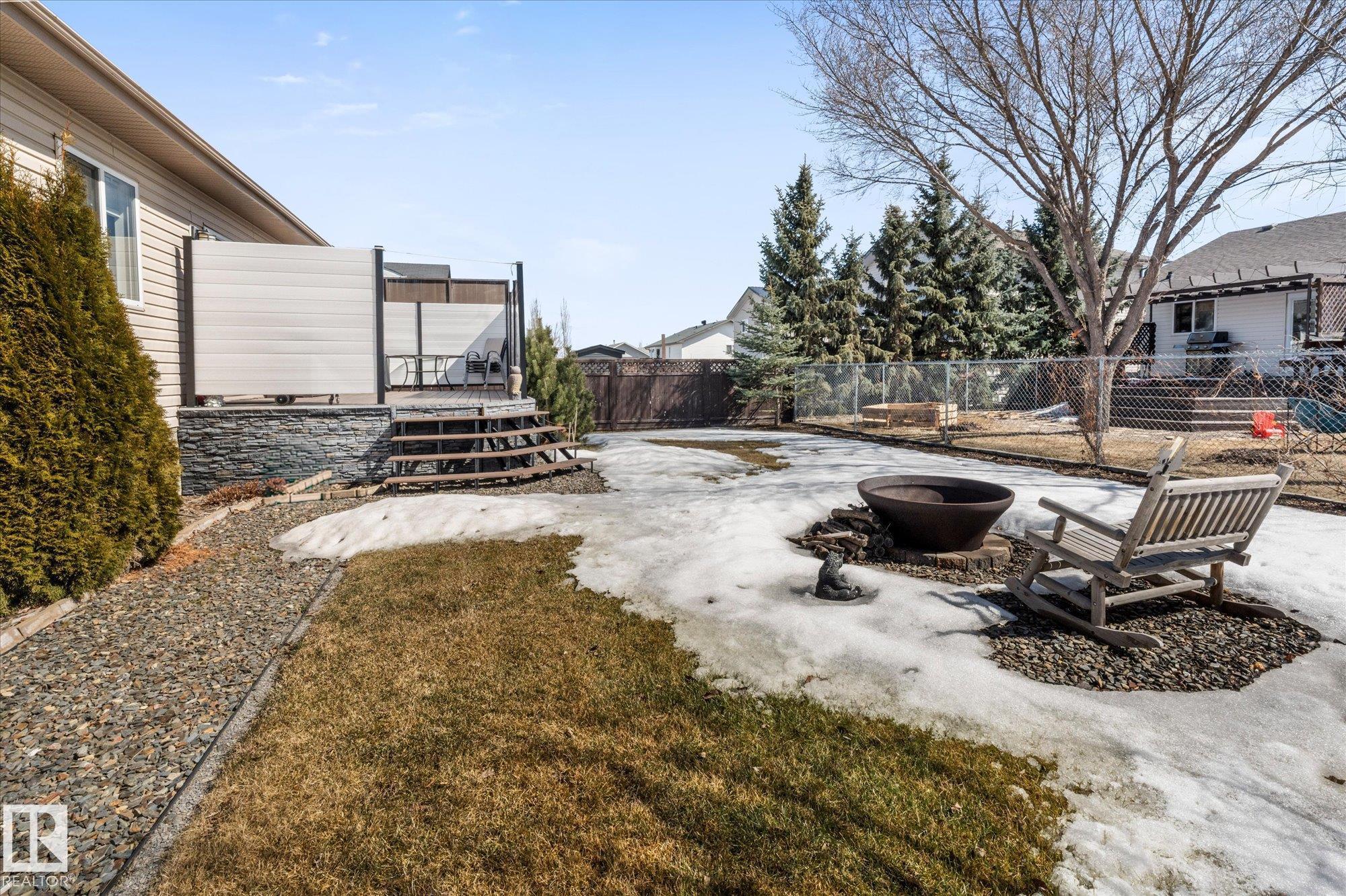 Welcome to this well-maintained bungalow in the Town of Thorsby, offering a great layout and plenty of space for the whole family. As you enter, you’re welcomed by a bright and spacious living room with vaulted ceilings, hardwood flooring, and a cozy gas fireplace. The kitchen includes plenty of cabinetry, white appliances, and a pantry, with the dining area providing patio door access to your fully private composite deck. Down the hall, you’ll find main floor laundry and a full 4 pce bathroom, followed by ...