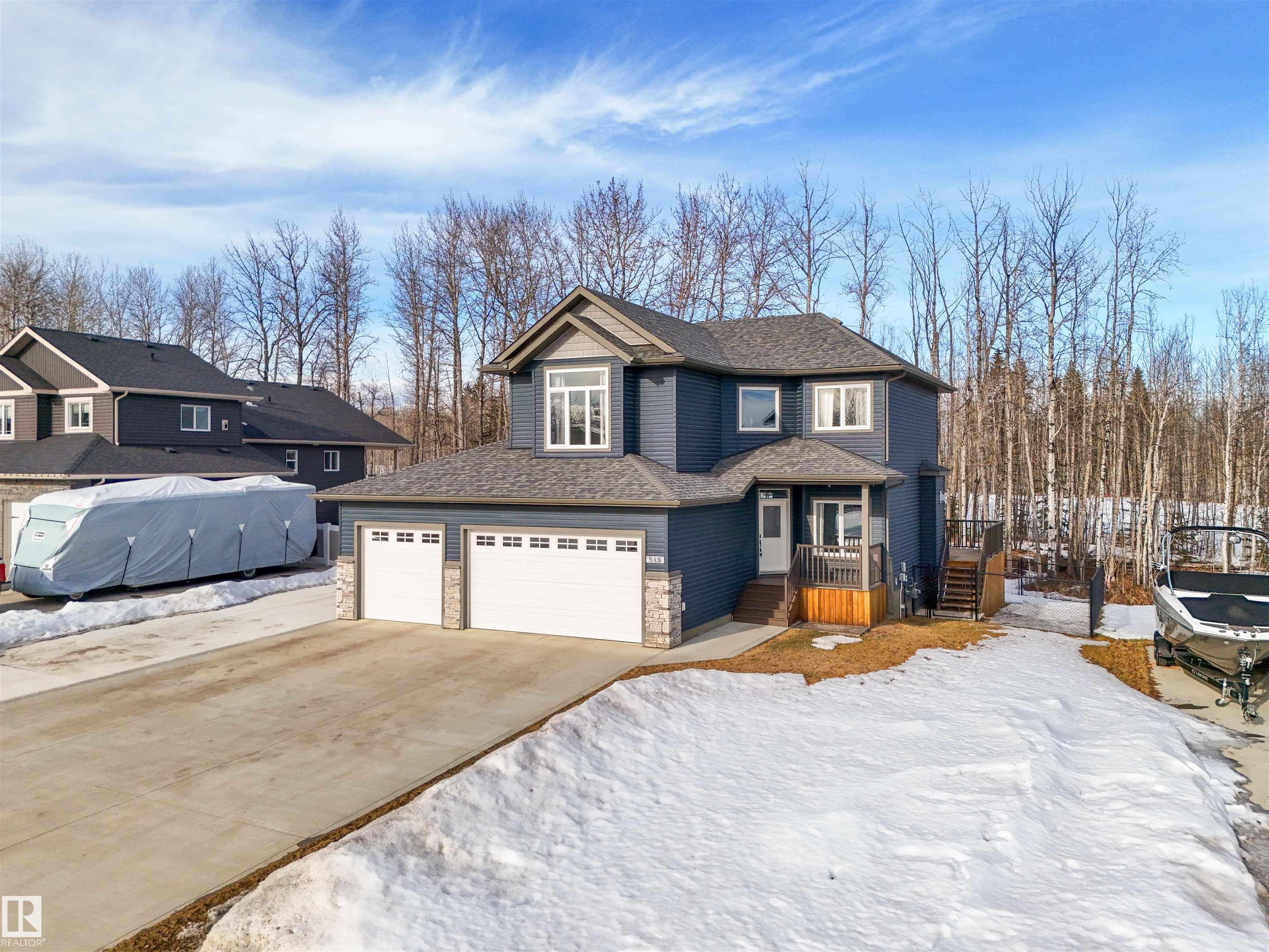 Welcome to 518 River Ravine Estates, located just outside Drayton Valley in the desirable River Ravine subdivision. Walking in the main entrance you are captivated by the grand windows flooding the home with natural light and the open-concept layout perfect for entertaining. Dream kitchen has a large island with granite countertops, walk-in pantry, ample cabinetry, and a brand new high end stove. The massive living room showcases a gorgeous brand new ash mantel above the gas fireplace. Room for everyone, 4...