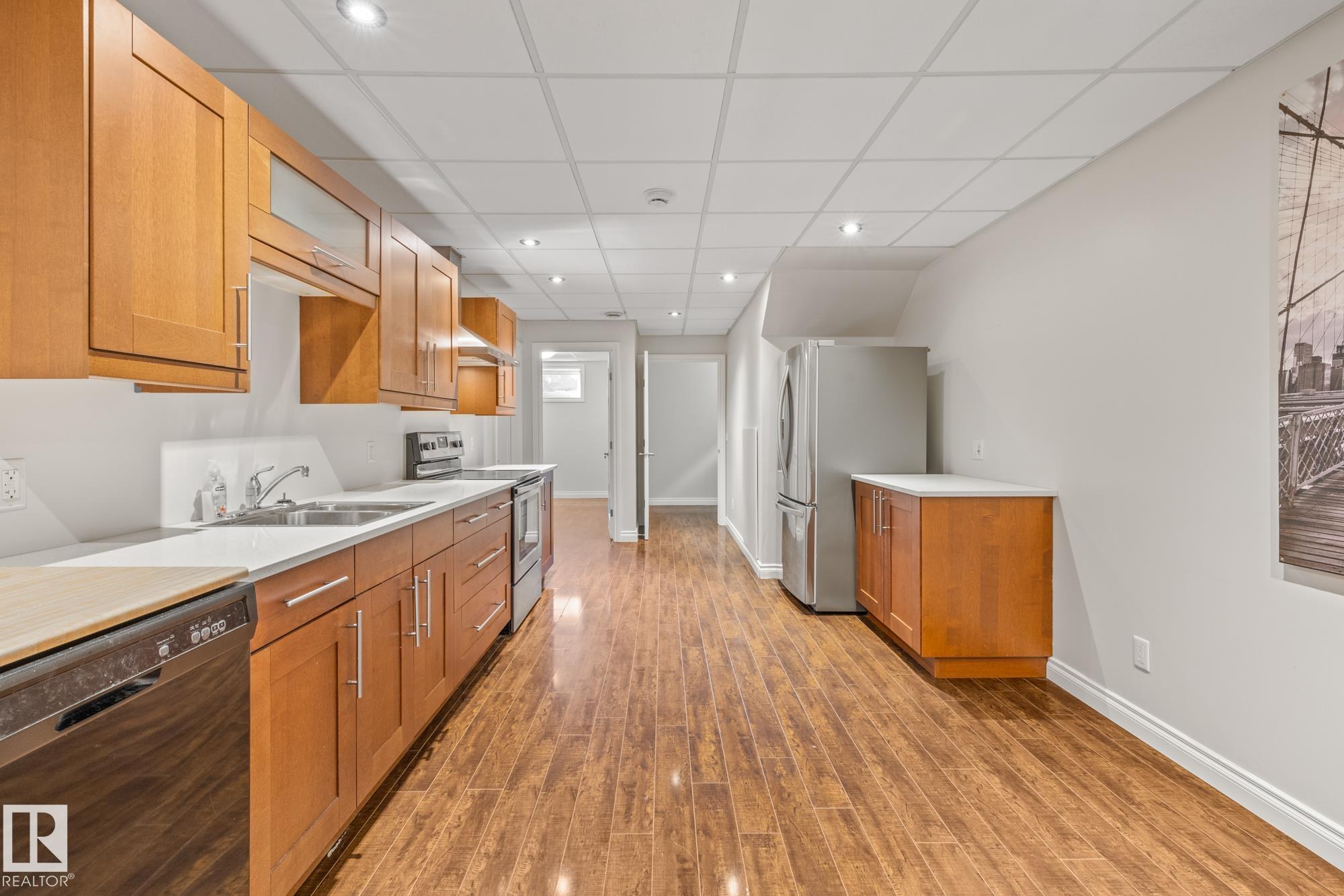 Spacious, well maintained, half duplex with 2 bedroom in law suite with separate laundry and entrance in the heart of Queen Alexandra! Walking distance to schools, parks, Whyte Ave and UofA! 2100 square feet above ground with 9’ ceilings and Hardwood on main floor, plus main floor office/den. Other perks include a large open concept kitchen/dining and living room with a gas fireplace and oversized east facing windows. Upstairs you'll find a large primary bedroom with a 4 piece ensuite, and a walk-in...